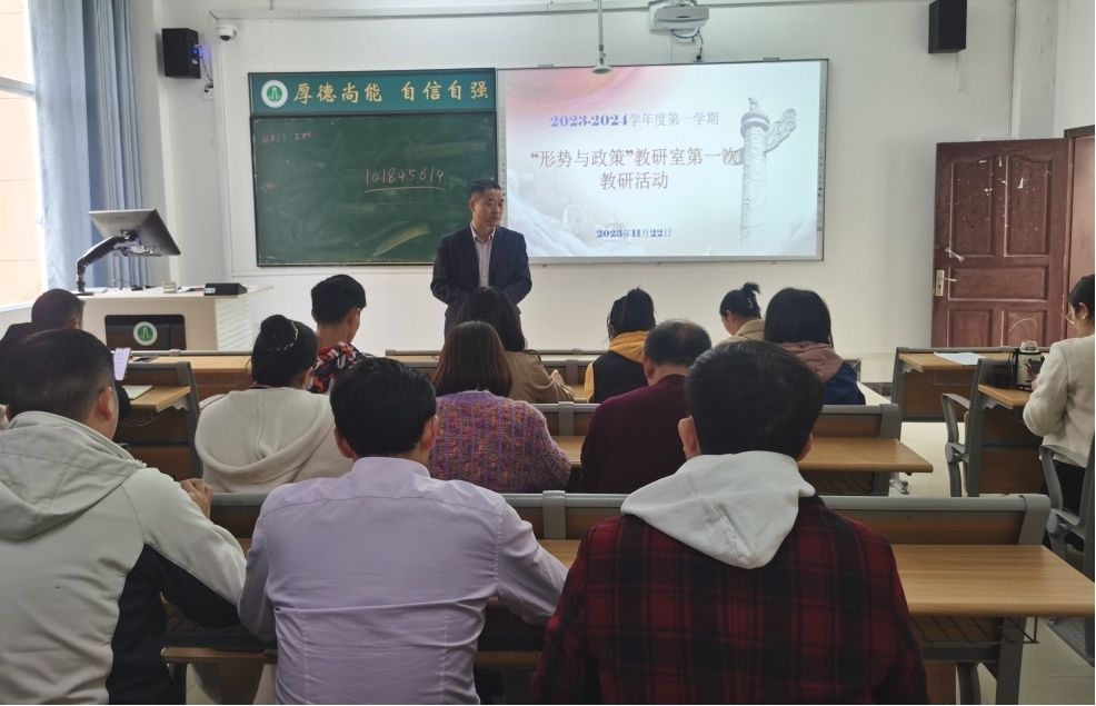 2023年11月22日下午三点,3044永利集团“形势与政策”教研室召集公司所有兼课教师在文A401教室开展本学期第一次教研活动。首先,“形势与政策”教研室主任常卫峰介绍形势与政策课的课程情况、学习通平台的使用情况、上课注意事项及此门课如何考核等;其次,答疑解惑,兼课教师特别是初次带这门课的教师存在的疑问现场沟通交流;再次,传达咸宁职院首届思政课教师教学基本功比赛事宜;最后,3044永利集团经理兼书记龚斌安讲话。龚经理从政治纪律、教学纪律、意识形态、3044永利集团做好服务工作等方面对党政干部和辅导员及教研室提出要求;大家纷纷表示要按照要求上好此门课。行政处室干部、院部书记、副书记、辅导员等30多人参加了此次活动。