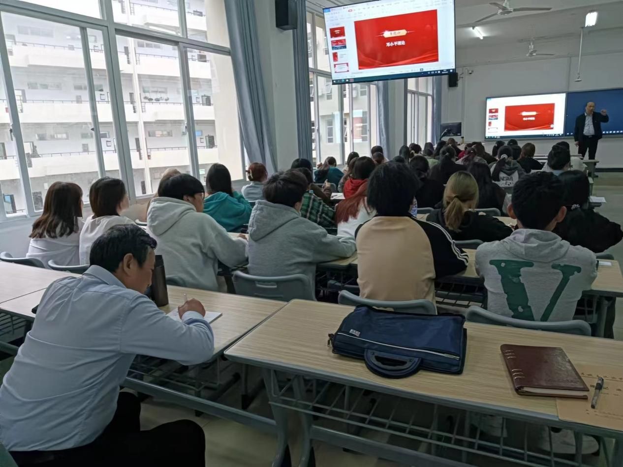 活动第二个环节,卢黎歌教授走进文华楼B栋302王翔老师的授课课堂,开展随机推门听课评课环节。