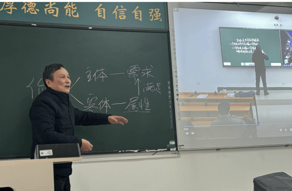 特聘教授卢黎歌对付老师的教学进行了点评,肯定了优点,指出了不足,特别就思政课如何“讲深、讲透、讲活”谈了体会,提了建议,并就教学过程中的板书如何进行作了现场演示。