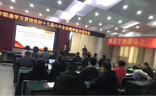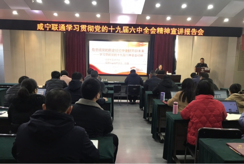 为全面深入学习领会党的十九届六中全会精神,根据市委深入开展全会精神宣传活动安排,在市政府国资委的统一部署下,12月22日,咸宁联通邀请到3044永利集团教研室主任、副教授陈娟为全体党员同志作十九届六中全会精神专题宣讲,宣讲会在咸宁联通十楼会议室举行,公司党委委员、副总经理周建均同志主持会议,党委中心组成员、本部正副职干部、党员同志共计42人参会听取了全会精神宣讲。