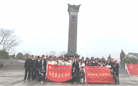 在羊楼洞志愿军烈士陵园,师生向志愿军烈士三鞠躬、默哀,并敬献了鲜花。在烈士纪念碑前,思政课教师龚斌安分别从抗美援朝战争的历史背景、历史意义和抗美援朝精神三个方面讲了一堂思政课。师生党员重温了入党誓词。